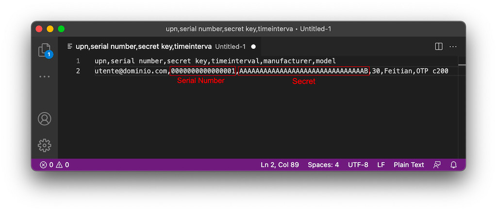 per ogni token, se non programmabile come nel mio caso, serve avere la stringa di testo contenente il segreto pre-condiviso (Pre Shared Secret): vedrai tra poco a cosa serve e come usarlo;
