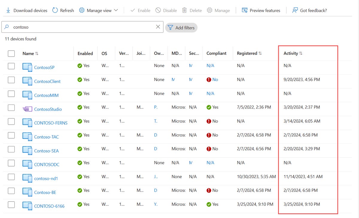 2️⃣ Entra - Implementate un flusso di pulizia basato sull’Activity del dispositivo (attributo ApproximateLastSignInDate).