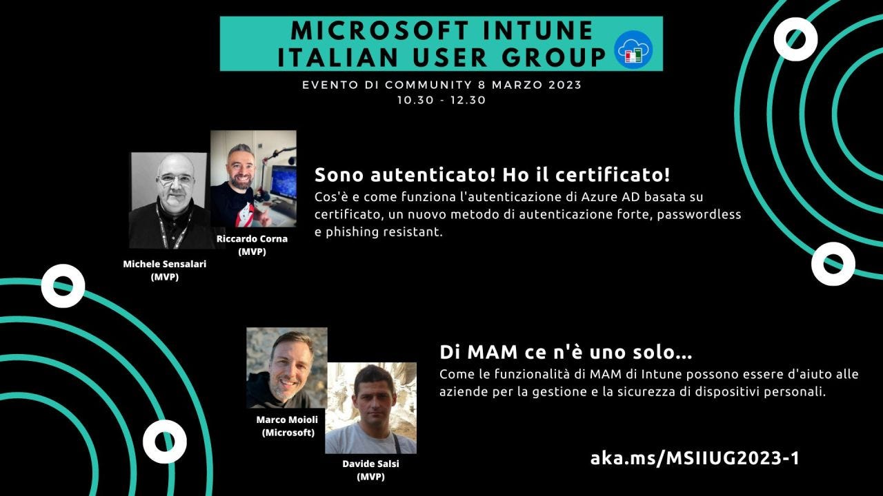 Ci siamo quasi: domani ci vediamo alle 10.30 per un super evento delle community Microsoft Intune Italian Users Group e Microsoft Security Italian Users Group! Insieme a Davide Salsi, Michele Sensalari e Marco Moioli ne vedrete delle belle.