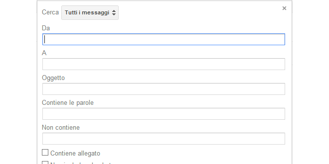 Queste ultime in particolare non sono quasi per niente documentate e non troverete alcun riferimento al loro utilizzo nemmeno nel sito di supporto ufficiale di GMail. Quindi, come si trasforma la ricerca precedente?