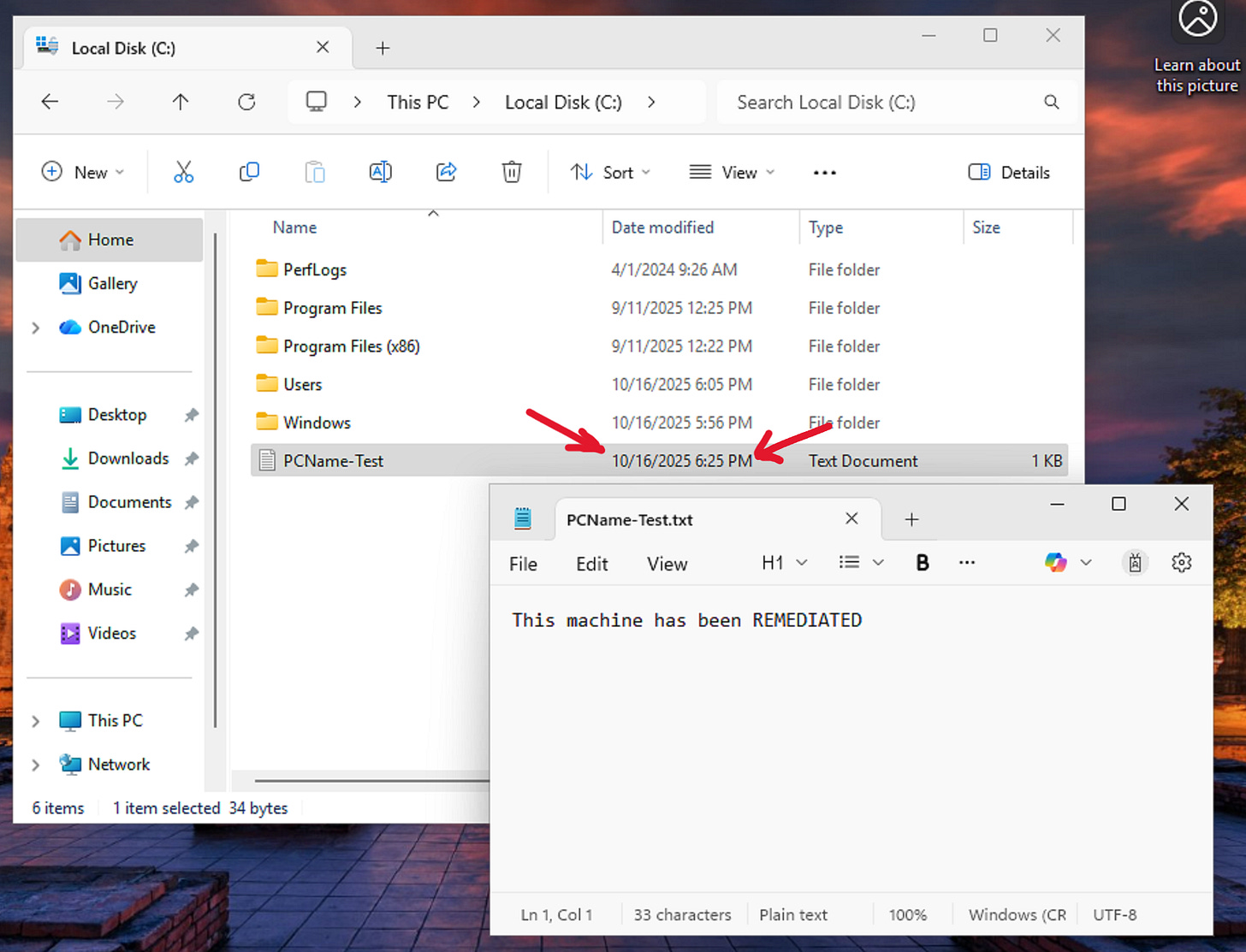 La remediation doveva scrivere un file di testo su C:\.