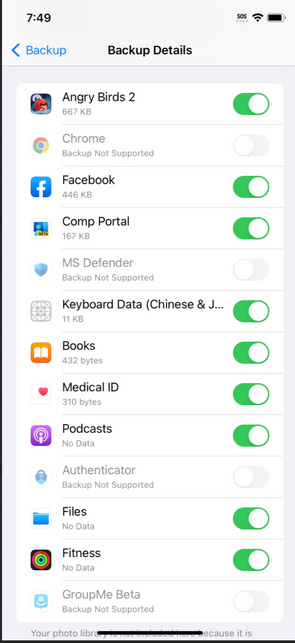 Qui sotto un’immagine di esempio di come dovrebbe essere la sezione Backup su iOS dopo aver usato queste nuove impostazioni.
