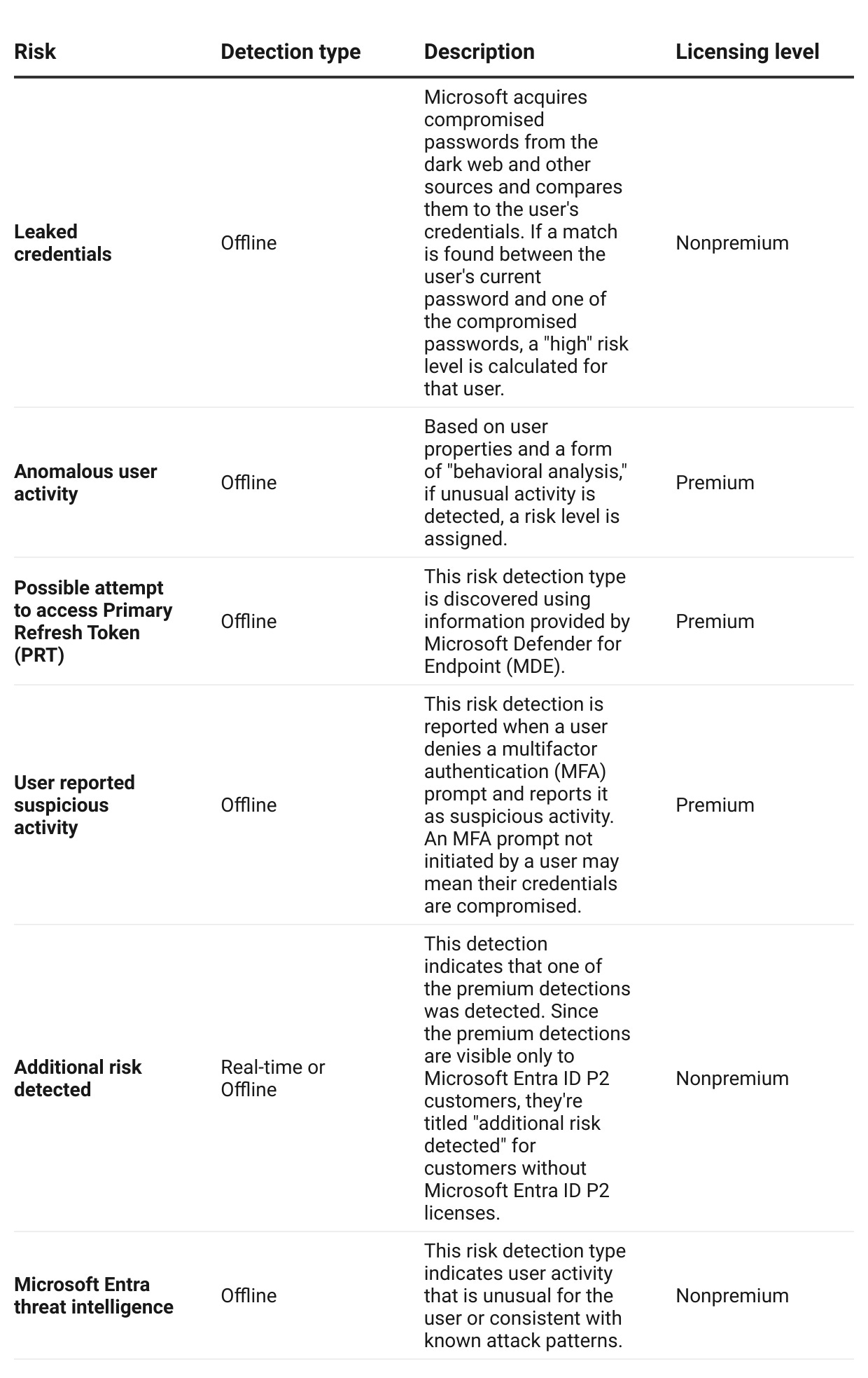 These are all signals, and as you can see, Entra ID is capable of detecting many of them.