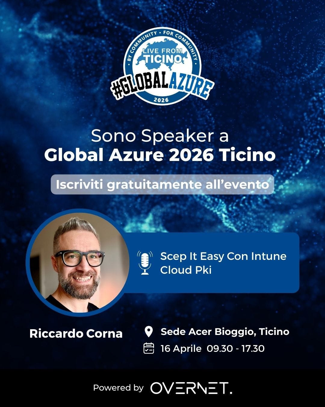 Specialisti IT! La stagione primaverile degli eventi ricomincia furiosa più che mai: sarò speaker a Global Azure 2026 Ticino, l’evento organizzato da OverNet! 🚀