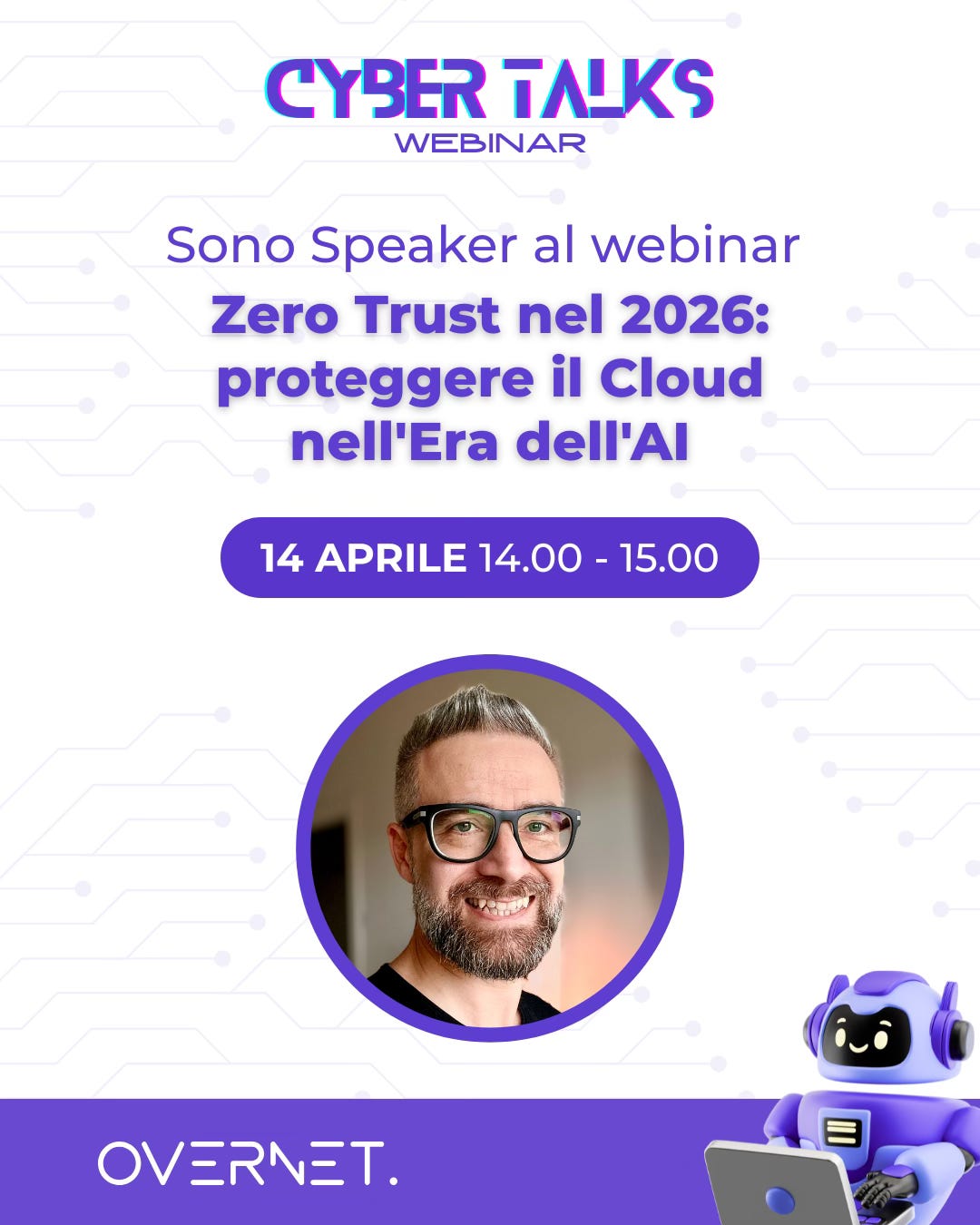 Zero Trust nel 2026: come proteggere il cloud nell’era dell’AI. Webinar gratuito il 14 aprile con Overnet Education.