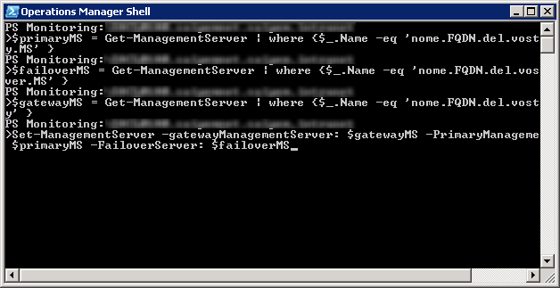 L’opzione di failover non è configurabile dall’interfaccia grafica della console di SCOM: è necessario armarsi di Powershell, ecco come fare: