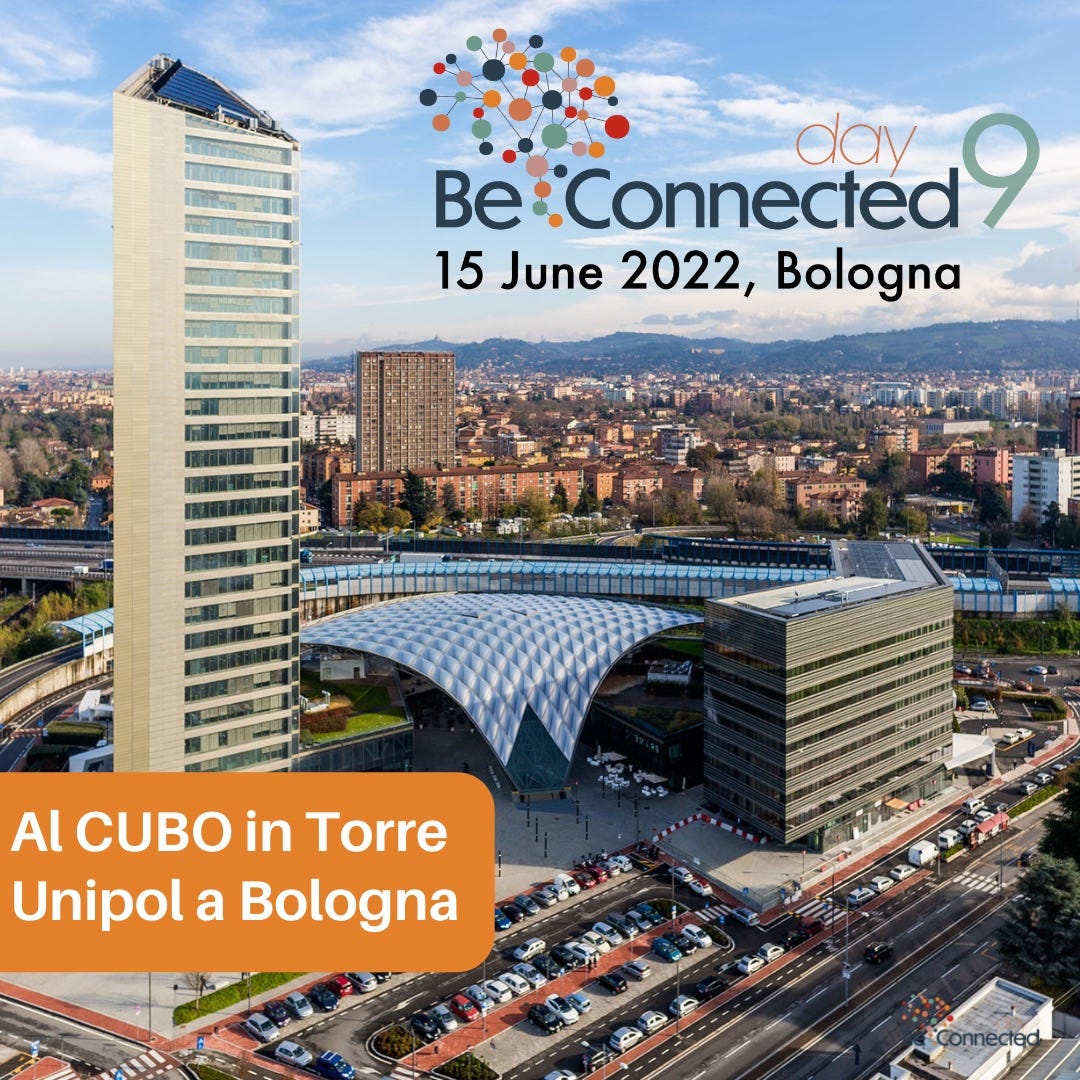Sarò speaker al Be Connected Day del 15 Giugno 2022 (Bologna – CUBO Torre Unipol)